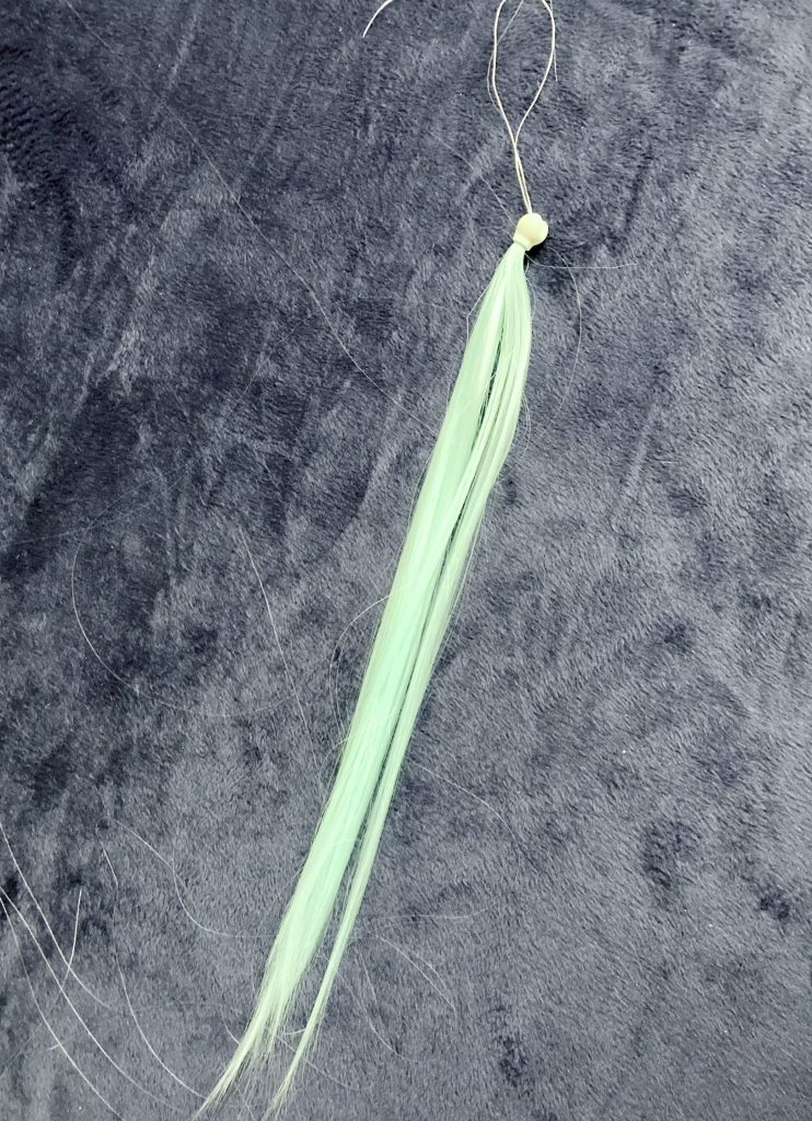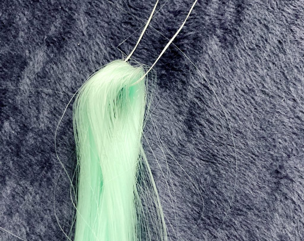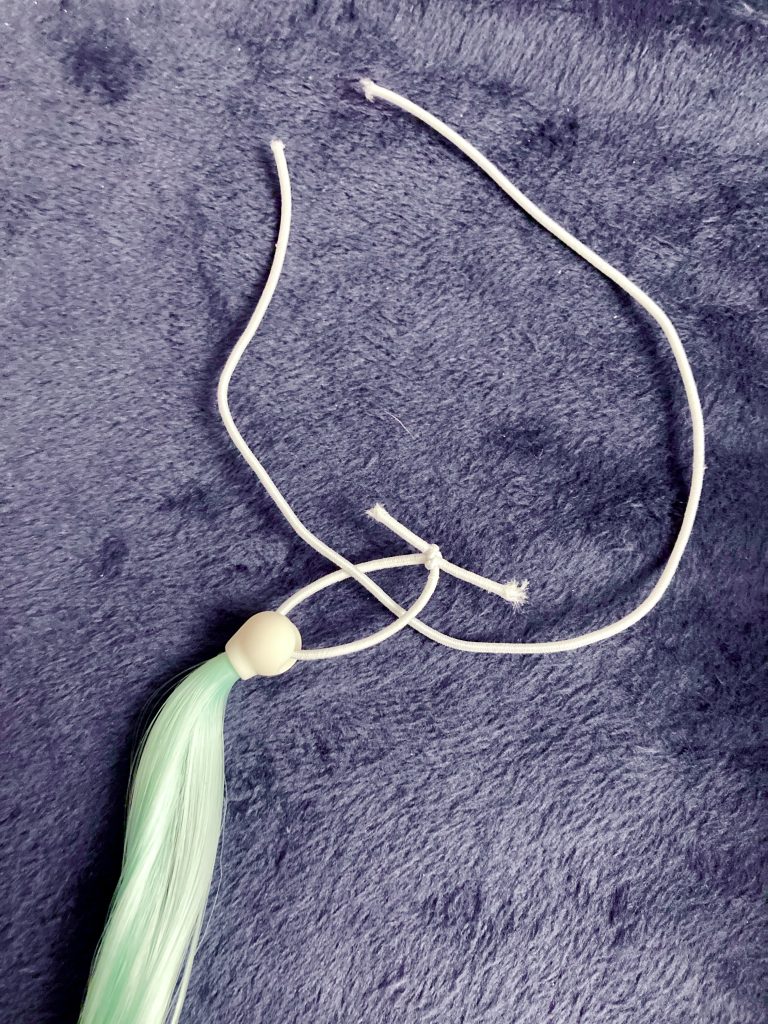 And that’s it for stringing the hair into the unicorn tail piece! If you used glue, make sure you give it time to dry before moving on to the next step.