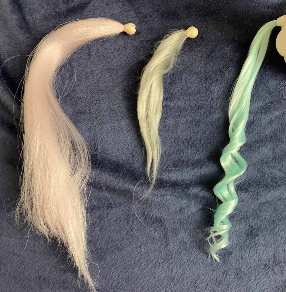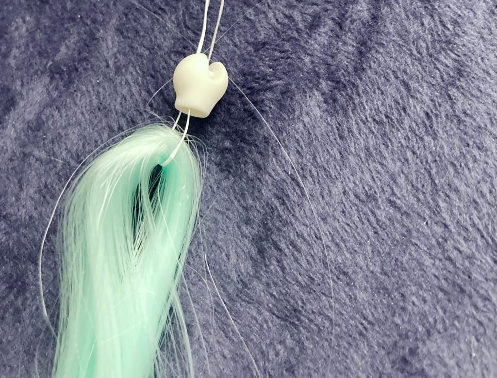 If you have any other questions about stringing hair into the unicorn tail pieces, reach out to me on bluesky or instagram @VivifyDolls. I’ll do my best to help!~