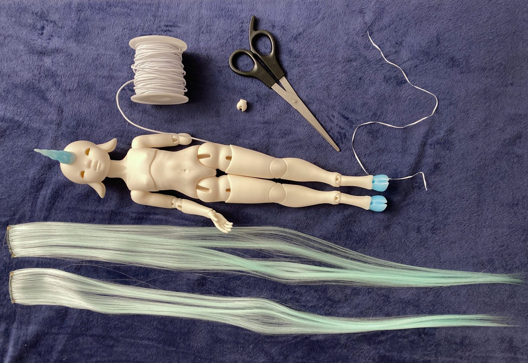 It has been brought to my attention that threading hair through the unicorn tail piece is not as intuitive as I had anticipated. So I’ve put together this quick guide for how you can turn that pesky tail stump into a flowing unicorn tail for your doll!